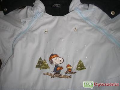 Dzien dobry mam do sprzedania kombinezon niemowlęcy fimy H&M Snoopy w rozmiarze 68 ( duże 68) w kolorze błękitnym z wizerunkiem Snoopiego na nartach.Kaptur dobrze zabezpieczający główke dziecka. Kombinezon jest rozpinany z obu boków ( co ułatwia ubieranie maluszka) , w nogawkach jest schowany ściągacz w rękawkach ściagacz polarowy , z którego można zrobić rękawice. Z tyłu w pasie jest nie duża gumeczka zbierająca kombinezon. Polecam , gdyż kombinezon jest jak nowy mało używany.